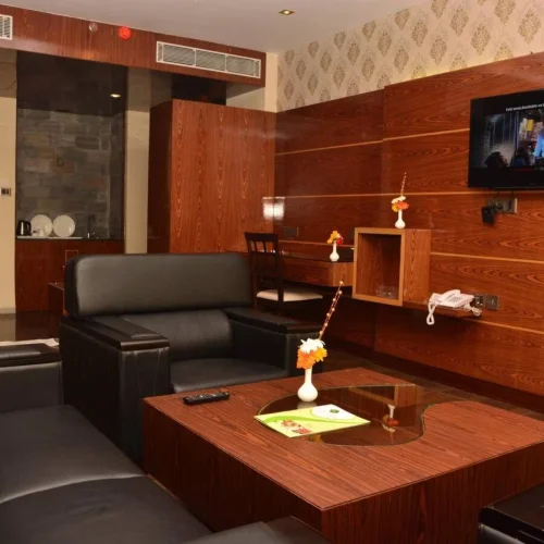 Spacious 430 sq. ft. Presidential Suites with modern amenities, sea views, serene surroundings, private Wi-Fi, ideal for luxury stays and meetings.