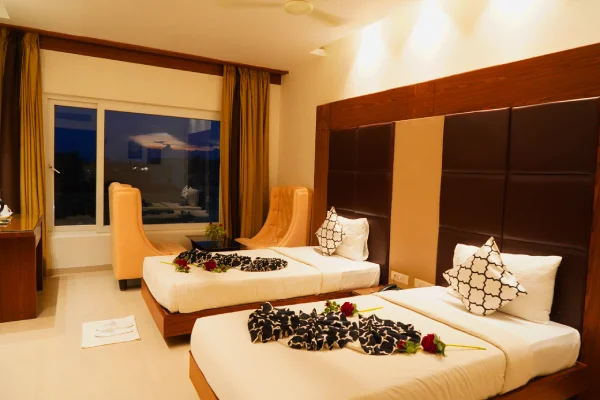 Hotel Golden Palace - Puri offers clean and well-maintained rooms, ensuring a peaceful and comfortable stay for devotees in Puri.